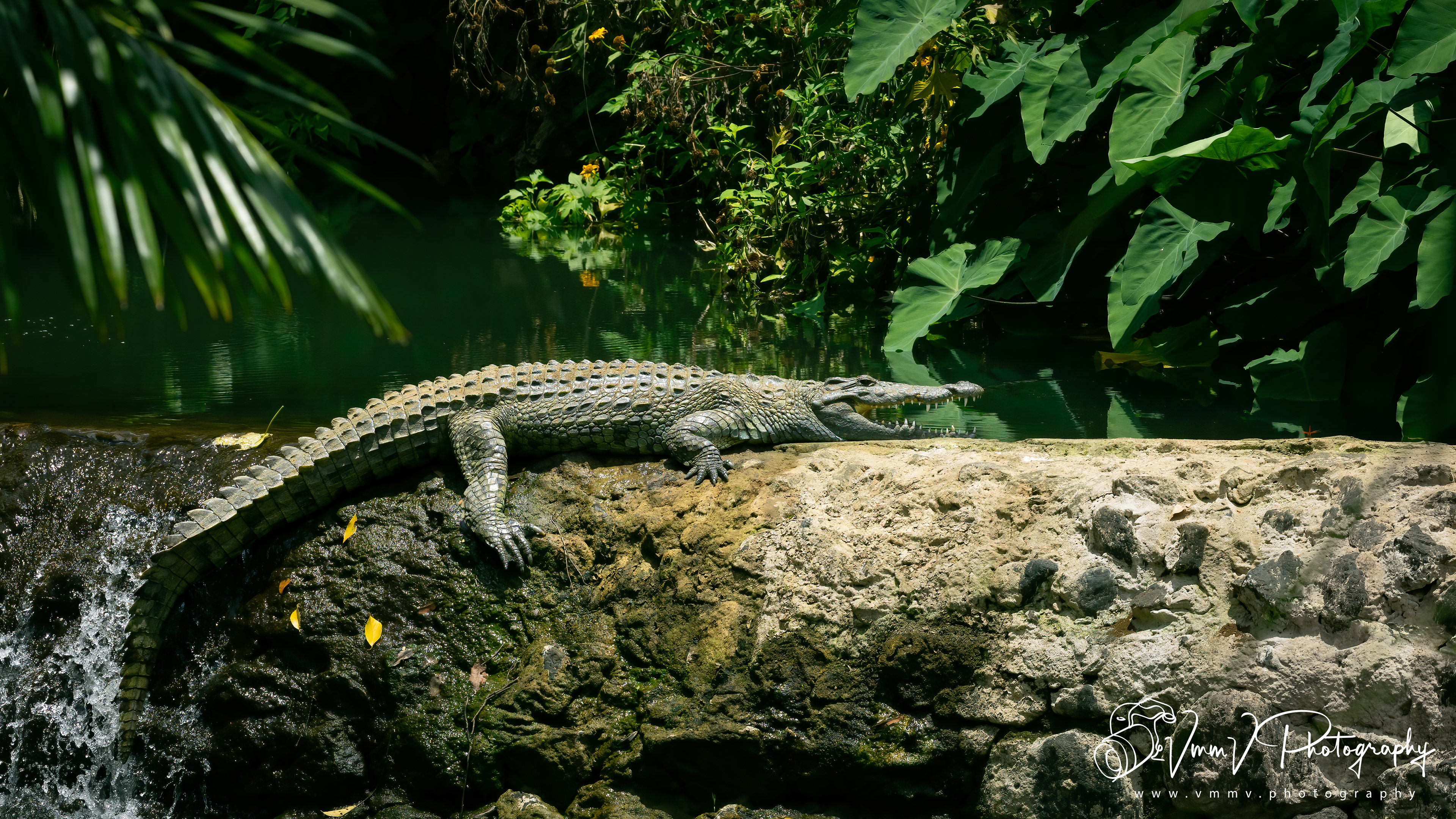 Returning to Rhino River Lodge to chill by the pool, we noticed a very large crocodile photobombing one of our snapshots. Very glad he was in the river and not the swimming pool!